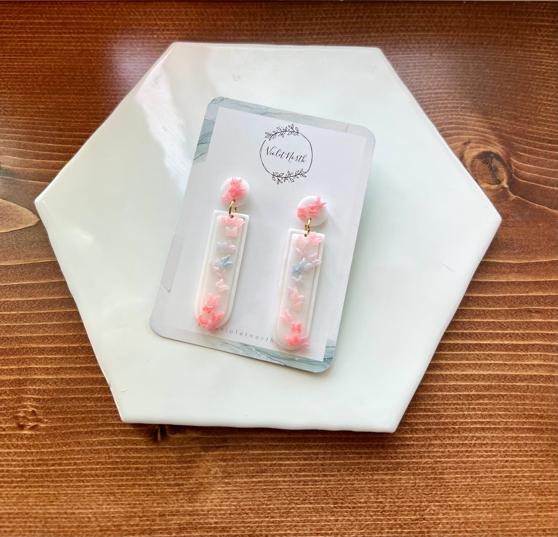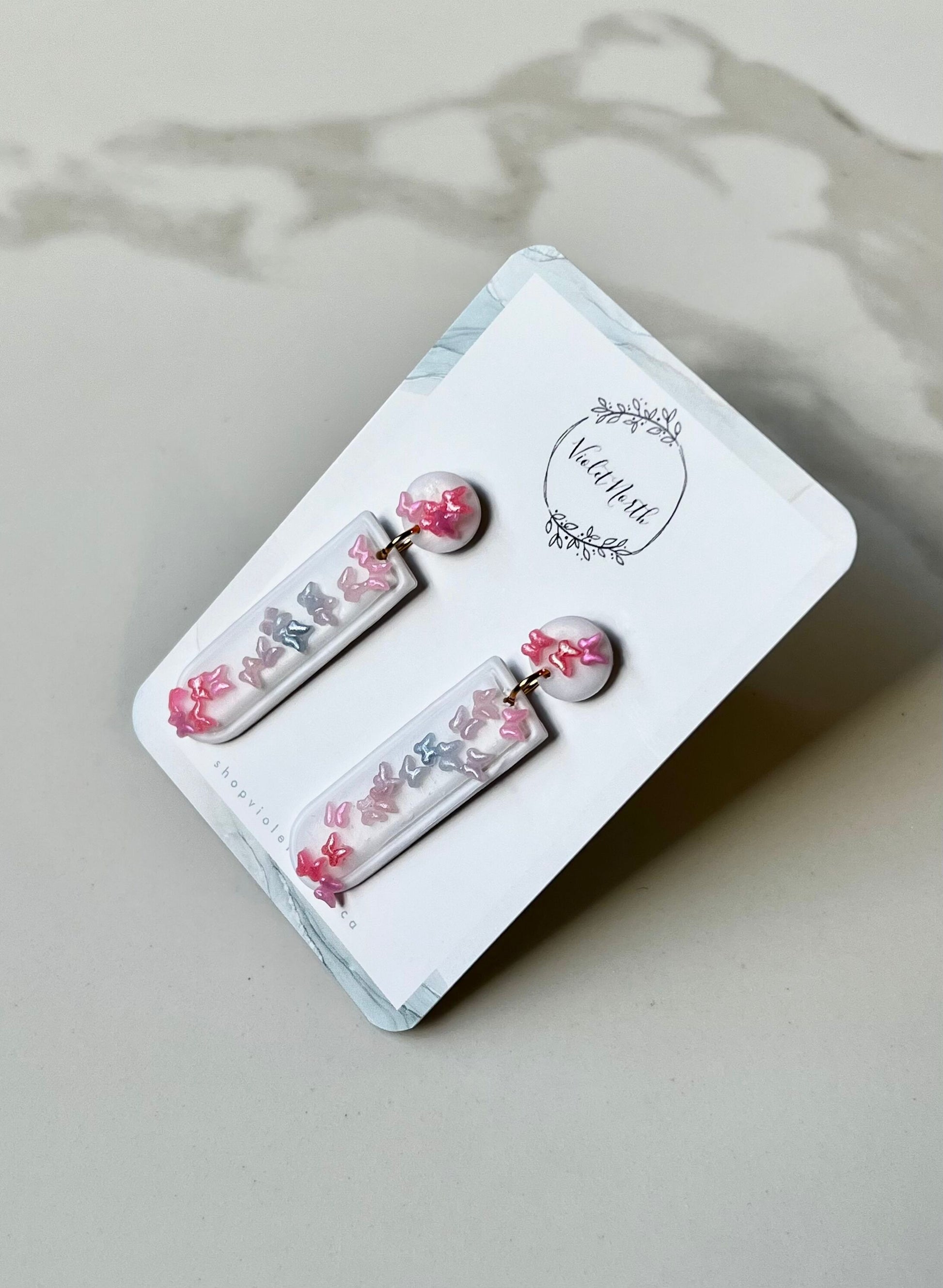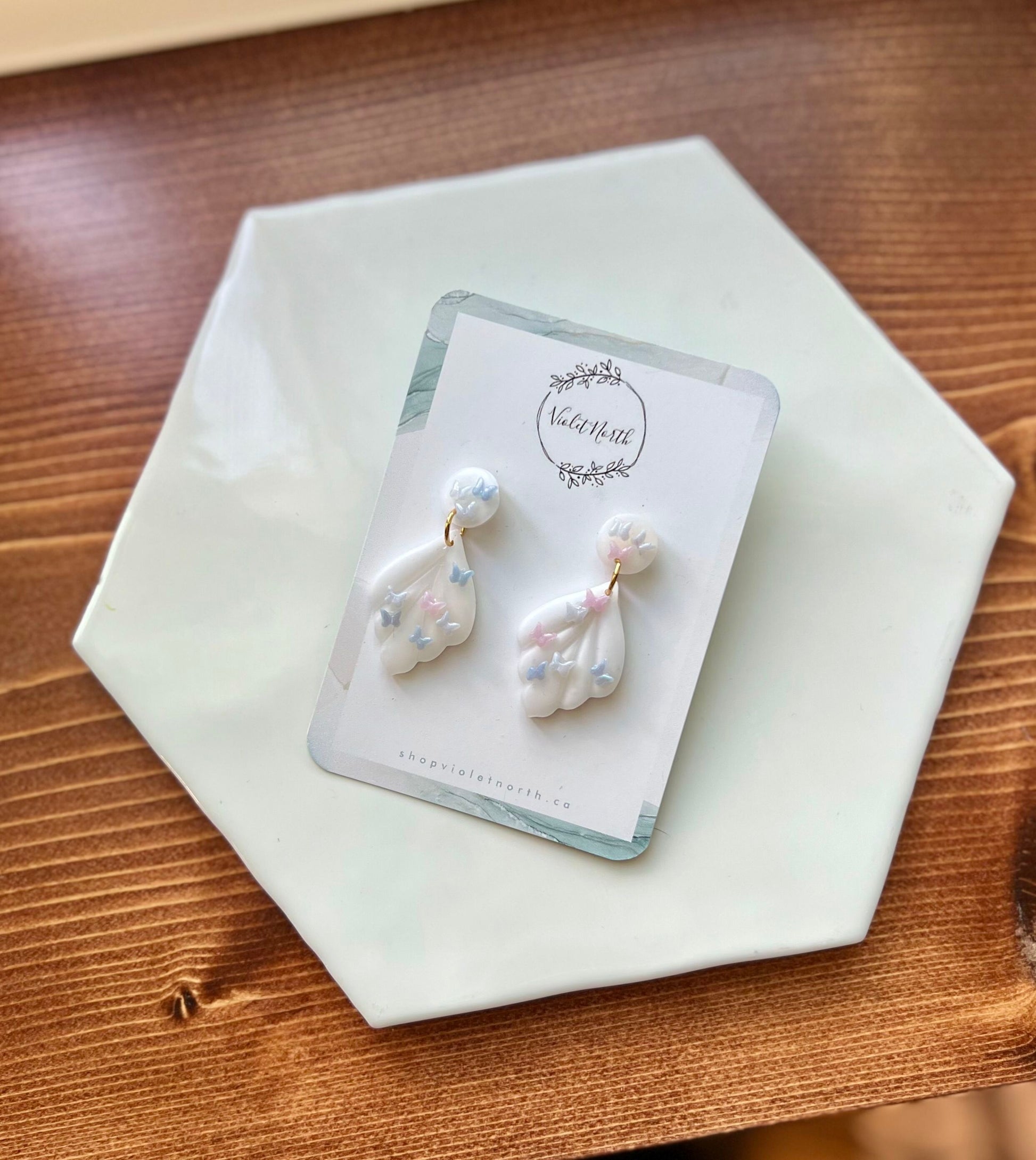 Add a touch of delicate charm to your look with these dreamy earrings. Crafted from lightweight polymer clay, offering a whimsical yet elegant accessory perfect for any occasion. Their soft colors and enchanting design bring a subtle, pastel vibe that effortlessly brightens your style.
